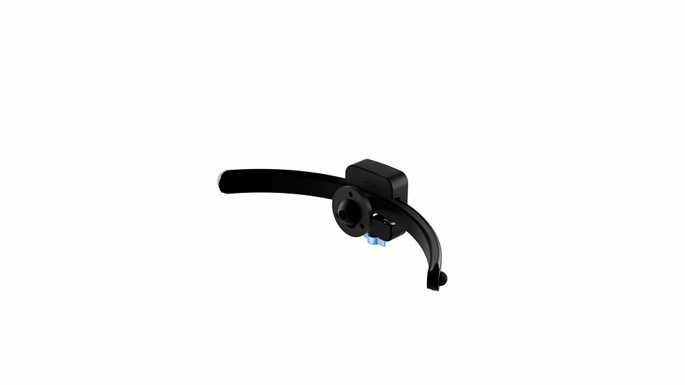 The Axion comprises of the base housing, curved rail and ball on a stem. The Axion is an interface mounted between the headrest pad and the headrest mounting hardware.